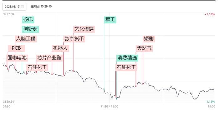 三大指数全天单边下行,截至收盘,沪指跌0.79%,深证成指跌1.21%,创业板指跌1.36%。两市个股普跌,下跌个股超4600只,红盘个股不足800只;两市全天成交1.25万亿元,较上一日放量成交596亿元,内资主力资金净卖出638.5亿元;两市涨跌中位数为-1.89%。盘面上,市场情绪极差,题材概念全线下跌。石油、天然气概念午后集体爆发,首华燃气、准油股份等多股涨停;影视传媒、短剧概念走强,慈文传媒、掌阅科技涨停;固态电池概念盘中拉升,湘潭电化、丰元股份等多股涨停;PCB、铜缆高速连接等AI硬件概念局部活跃,逸豪新材、凯旺科技等涨停。跌幅方面,高位股上演跌停潮,利民股份、永安药业、同洲电子等多股跌停;核聚变概念领跌两市,合锻智能跌停;CRO、减肥药、创新药等医药概念持续大跌,常山药业20CM跌停;多元金融、互联网金融、券商、期货等大金融概念集体砸盘;成飞概念、军工电子、军工信息化等军工产业链集体下行;新老消费、房地产产业链持续走低;稀土、黄金、有色金属概念集体弱势;算力、数字经济、低空经济、无人驾驶等概念全线下行。消息面上, 1、外媒报道,美国正考虑在本周末对伊朗发动袭击;2、美联储不降息,维持利率不变。