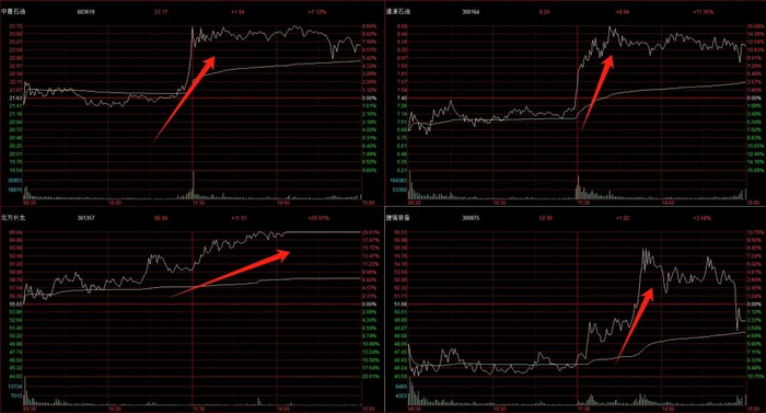 全场的亮点在下午中东冲突相关概念,先是油气这边中曼石油高举高打冲板,带动通源石油大幅冲高,随后是北方长龙艰难上板,带动军工方向捷强装备冲高翻红。