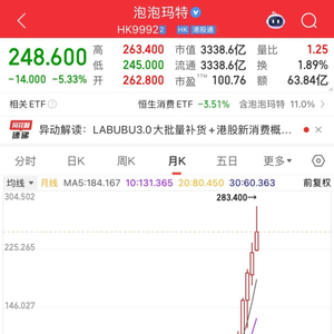 泡泡玛特暴涨17倍后一路走低,专家提醒警惕回调风险