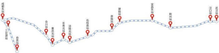 最新的运行图显示,该趟列车始发自贡,终到武汉,共14个站点。