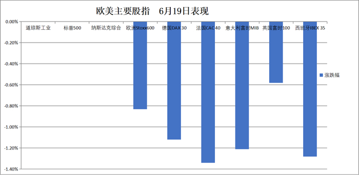 欧美股市:美股休市。欧洲STOXX 600指数跌0.83%,报535.86点。