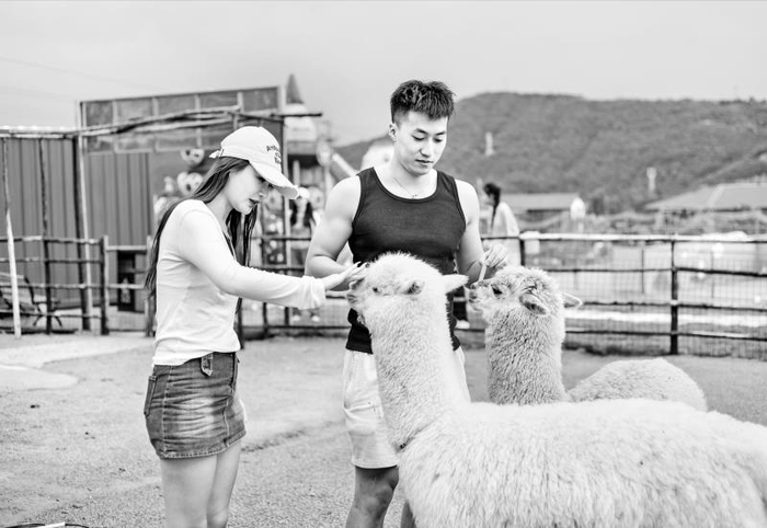 游客在金锁关石林景区的萌宠乐园打卡