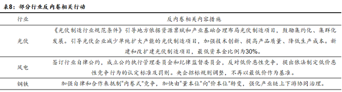 近年来我国部分工业领域因供需失衡陷入低水平重复的 “内卷式”竞争,表现为盲目扩产、价格混战和资源错配等形式,对我国经济的高质量发展带来阻碍。随着我国经济进入新旧动能转换期,传统依赖要素投入的粗放模式难以为继。2024年以来,中央政治局会议、中央经济工作会议连续强调需“综合整治内卷式竞争”,2025年政府工作报告首次将“综合整治内卷式竞争”写入工作目标,指出通过破除地方保护和市场分割、打通市场准入退出、要素配置等方面制约经济循环的卡点堵点,综合整治“内卷式”竞争。