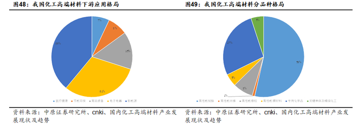在我国经济持续转型升级的背景下,科技创新是我国制造业发展的主旋律,部分新材料下游行业具有较高的增长前景,如锂电池、光伏、风电等新能源产业以及电子信息、先进制造等领域等。在下游需求的拉动以及国产替代进程的推进下,相关新材料细分领域,如电子化学品、锂电、光伏材料等有望迎来快速发展良机。
