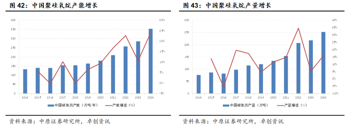 有机硅是指含有硅碳键(Si-C)、且至少有一个有机基团是直接与硅原子相连的一大门类化合物的。全球有机硅工业自20世纪40年代实现工业化、20世纪70年代后开始规模化生产,至今工业化发展已70多年的历史。20世纪90年代以来,受益于下游需求的快速增长和生产技术的提升,全球有机硅行业保持了快速发展。2008-2023年,全球聚硅氧烷产能从150.2万吨/年增长至363万吨/年,产量从113.3万吨增长至292.1万吨,年均复合增长率分别为6.07%和6.54%。