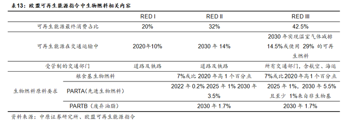 欧盟于2009年开始实施《可再生能源指令》(RED),大力推动了生物燃料在交通领域的应用。2018年欧盟出台了《可再生能源指令》(RED II),并于2021年正式执行。该指令提出了2021-2030年可再生能源发展的目标和规划,欧盟将进一步优化生物燃料结构,鼓励以废弃资源综合利用的油脂原料生产的先进生物燃料。2023年修订的《可再生能源指令》(RED III)将可再生能源在最终能源总消费总量中的份额提升到42.5%,可再生燃料在交通运输领域的占比上升到29%,有望大幅拉动生物柴油需求。从具体细则看,以废弃油脂、动物油为主的生物柴油减排属性较好,是未来发展的重点。未来欧洲对生物柴油的需求增量将主要来自于基于废油脂的生物柴油,其需求量有望大幅提升。
