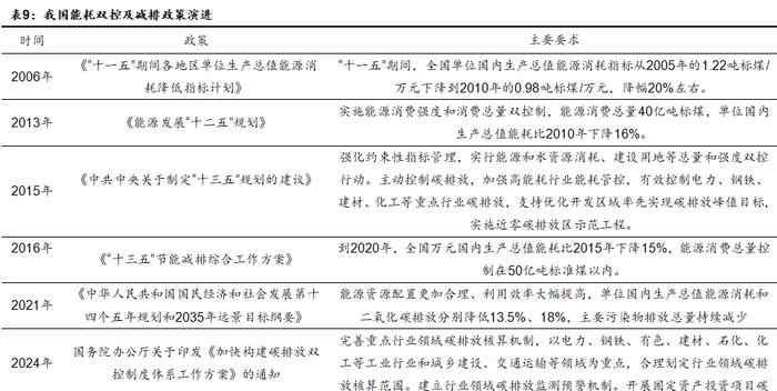 随着行业反内卷整治的进一步深入,化工行业部分领域的产能重复建设、无序过度竞争的现象有望缓解。与此同时,随着环保、安监、减排等方面的监管要求的不断提升,亦有望推动化工行业供给侧的迎来新一轮的约束。为全面实现碳达峰、碳中和的双碳目标,近年来我国减排政策和目标不断推进,并逐步由能耗双控向碳排放双控的新机制全面转型,将能源消费总量和强度控制转向碳排放总量和强度控制,推动经济社会发展全面绿色转型。