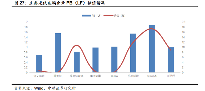 目前光伏玻璃估值均处于历史低位,建议关注具备成本优势和资金实力优势的头部企业。