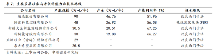 存量项目存在并购整合的预期。多晶硅产品价格低迷,厂商停工检修不断,截止2025年6月中旬,我国多晶硅在产企业数量为11家,基本全部处于降负荷运作状态。多晶硅行业经过几轮洗牌,目前各家企业技术路线稳定,市场格局处于高度集中状态,前六家厂商产能合计253万吨/年,占比近85%,为行业在困境时展开大的并购整合提供条件。