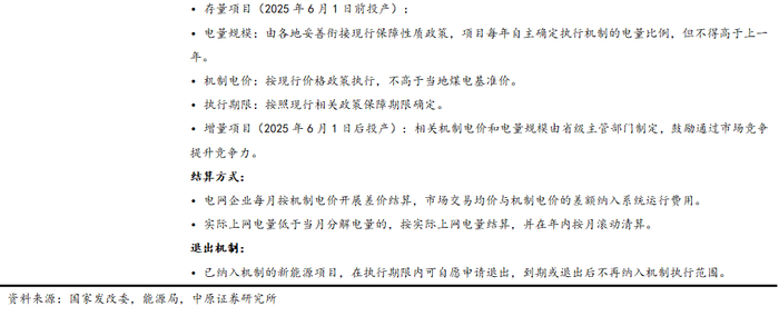 136号文加速电力交易的市场化进程,加大新能源电价的不确定性。2025年2月,国家发展改革委发布《关于深化新能源上网电价市场化改革 促进新能源高质量发展的通知》(发改价格〔2025〕136号)。通知要求深化新能源上网电价市场化改革,推动风电、太阳能发电等新能源上网电量全部进入电力市场,上网电价通过市场交易形成;创新建立新能源可持续发展价格结算机制,对存量项目,纳入机制的电量、电价等与现行政策妥善衔接;对增量项目,纳入机制的电量规模由各地按国家要求合理确定,机制电价通过市场化竞价方式确定。政策自2025年6月1日区分新老项目。