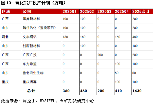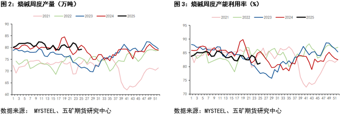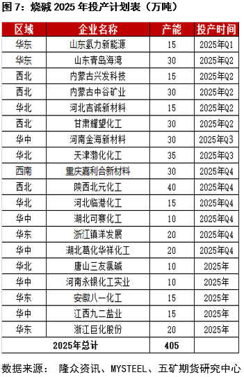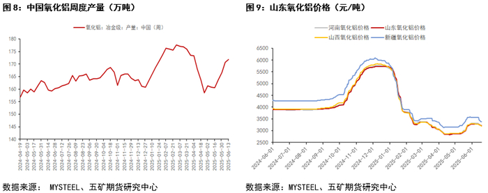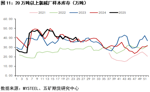 氧化铝投产方面,预计下半年氧化铝投产产量较上半年将有所下滑,2025H2合计新投产约610万吨,较H1下滑210万吨,且利润下滑和政策管控预计将导致下半年新投产能不确定性增加。此外,多数厂家前期已对液碱进行了积极备库,因此预计下半年整体备碱需求较上半年会有较为明显下滑。