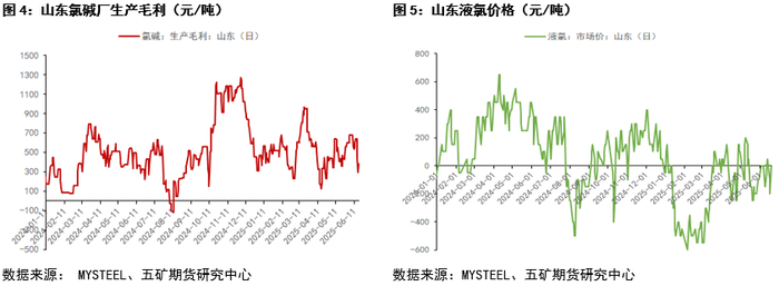 随着利润回暖,氧化铝前期检修产能逐步回归,周度产量近期连续攀升至前期高位。近期山东某大型氧化铝厂持续备碱为液碱需求提高较强支撑,但据调研,该氧化铝厂液碱库存目前回归至高位,新投产线已经完成灌槽,后续备碱需求或将有所下滑。