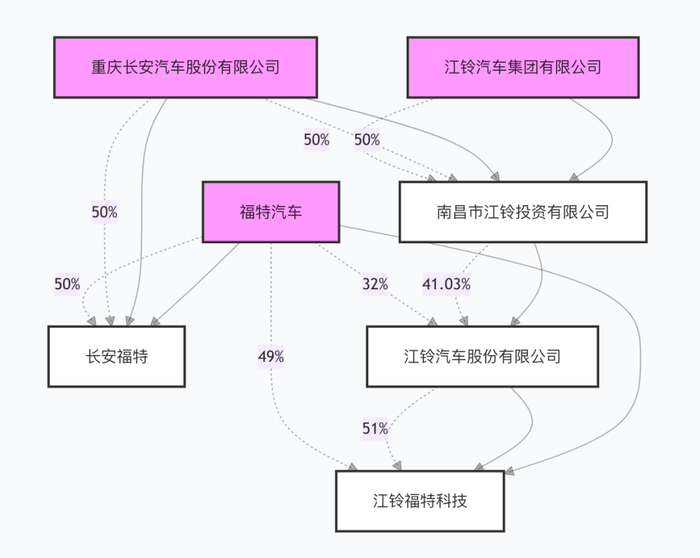 据了解,长安福特和江铃汽车均为福特在华的两个合资企业,前者成立与1995年,后者成立于2001年。在股权架构上,江铃汽车和长安福特也存在密切交集。江铃汽车股份有限公司也就是江铃福特的实体公司,南昌市江铃投资有限公司持股41%,福特汽车持股32%,而南昌市江铃投资有限公司由江铃汽车集团有限公司和重庆长安汽车股份有限公司分别持股50%,长安汽车间接持有江铃汽车股份有限公司约20.1%的股份,与江铃汽车集团有限公司共同为江铃汽车的实际控制人。