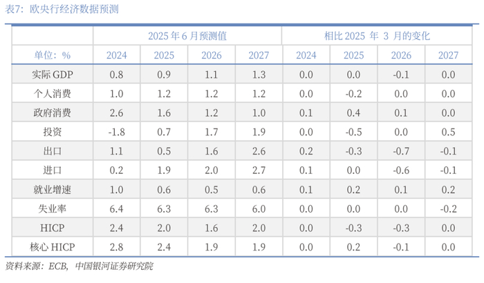 展望下半年,欧元区2025年的经济前景并不悲观,但存在经济增长趋缓的可能,在美欧关税不出现重大转折的情况下,预计2025全年欧元区GDP增长1%左右。