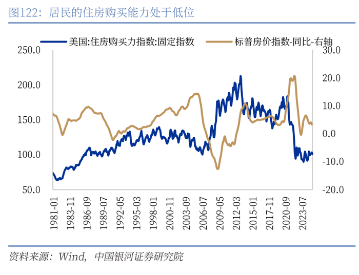 建筑和地产投资预计持续弱势,一方面建筑投资中增长较快的生产厂房类已经开始放缓,且其他包括商业、交运公路等建筑均增长疲弱,另一方面住宅投资继续面临供给端新房偏多而成屋库存不足、需求端利率和高房价压制需求的问题。从实际建筑投资来看,增长较快的主要是制造业相关建筑结构,其他建筑基本处于走平或放缓中,带动实际建筑投资轻微负增长。考虑到除能源结构外的其他结构,特别是过剩的商业地产和已经处于高位的制造业厂房等,难以出现进一步扩张,建筑投资仍可能在需求不足下轻微拖累投资。住宅投资面临的困难同样尚未发生改变:供给方面,新建住宅的开工和库存水平仍明显高于销售,这将在短期继续压制住宅投资;另一方面,偏高的市场利率使得有贷款成屋所有者再融资依然困难,这不仅限制了价格相对更低的成屋供给,也减少了成屋所有者购买新房并降低库存的能力。从数据来看,房屋销售的低迷和新房持续偏高的库存表明,高利率下开发商并没有进一步投资新房的意愿。从居民购买力角度来看,高房价、高利率高利率、不活跃的二手房市场也都压制的相关需求。在供给偏多、结构错配、需求受压制的情况下,住宅投资在利率明显降低前的改善空间有限。