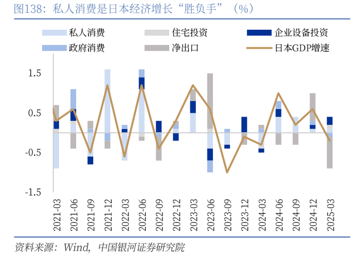 综合来看,日本经济增长的可持续性取决于以下三个关键因素:(1)全球贸易政策的演变及其对企业海外布局、出口需求和物价走势的影响;(2)“工资—消费—企业利润”的良性循环能否持续巩固,推动内需稳步恢复;(3)通胀结构能否由食品、能源价格推动,逐步转向工资-消费驱动。若上述因素维持当前态势,预计2025年全年日本实际GDP增长将在0.5%左右。