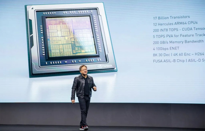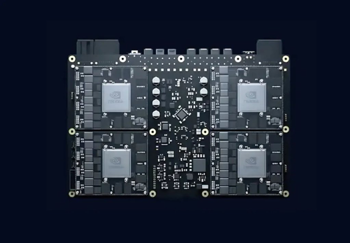 但由于芯片之间使用的是低速协议连接,所以四颗 Orin 并不能同时处理一个任务,运行内存也无法共享。