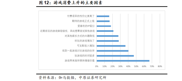随着中国社会主力群体结构变化,“90后”“00后”“Z世代”等伴随互联网与游戏成长的年轻用户群体数量将不断增加并逐渐成为社会主力消费群体,这代人一方面能够接触游戏的机会更多,另一方面消费观念与上一代有较大不同,“悦己”、“情绪付费”的消费理念驱动下为娱乐内容付费的意愿明显更高,用户ARPU值也有长期持续增长的动力,并成为推动国内游戏市场增长的核心。根据伽马数据《2025中国游戏产业趋势及潜力分析报告》显示,有66.7%的用户认为游戏带来的陪伴提供情绪价值会促进游戏消费上升。