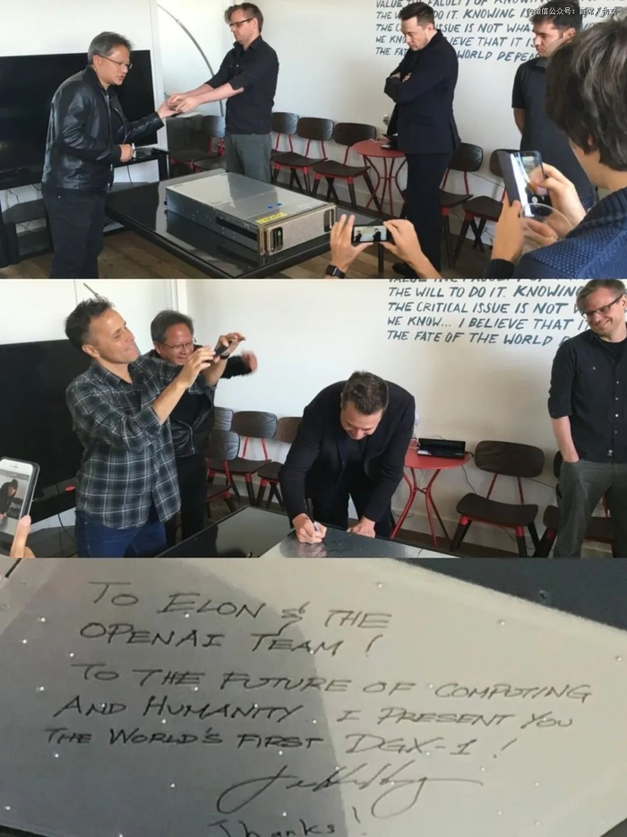 9年前,黄仁勋*次向OpenAI赠送全球*台DGX-1超级计算机的时候,留言“To ELON & THE OPENAI TEAM!”,丝毫未提及奥特曼的名字。在那场大佬会面留下的照片资料里,也不见奥特曼的身影。