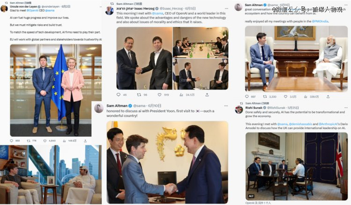 据媒体统计,在几周的时间里,他惊人地访问了22个国家,始终保持着谦逊的姿态,友好且热情,向各国领导人们宣称自己支持对人工智能进行监管,但同时也表达出对于监管过度的担忧。