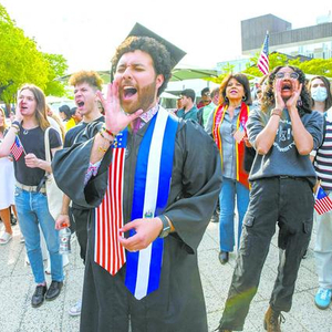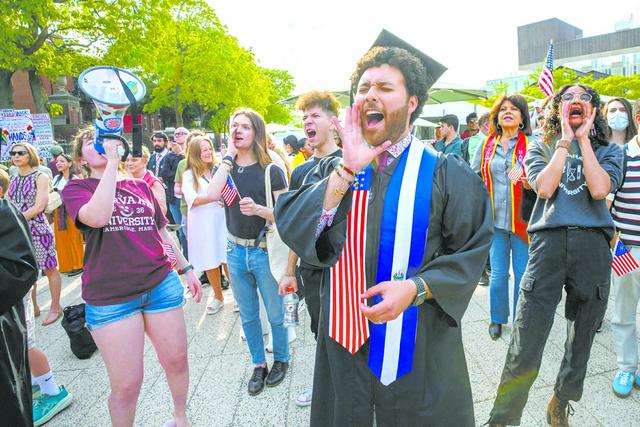 哈佛大学学生5月27日举行声援国际学生的活动。(视觉中国)