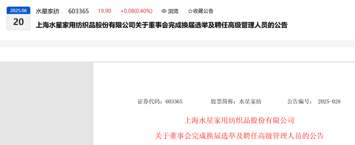 2025-06-20水星家纺:上海水星家用纺织品股份有限公司关于董事会完成换届选举及聘任高级管理人员的公告