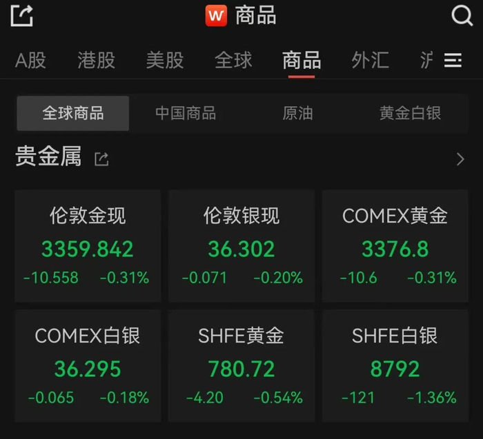 截至发稿,COMEX黄金期货下跌超0.3%,报3376.8美元/盎司。