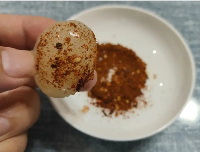 晶莹透亮的荔枝蘸上深褐色的酱油,荔枝的清甜混合着酱油的咸鲜,咬上一口,回味无穷。