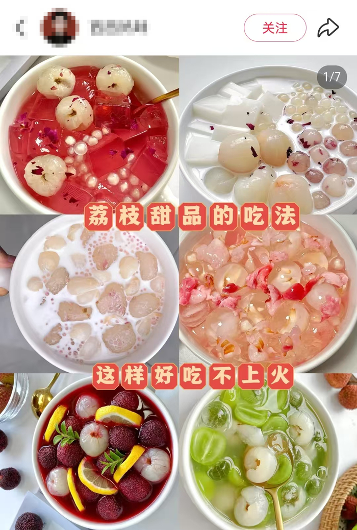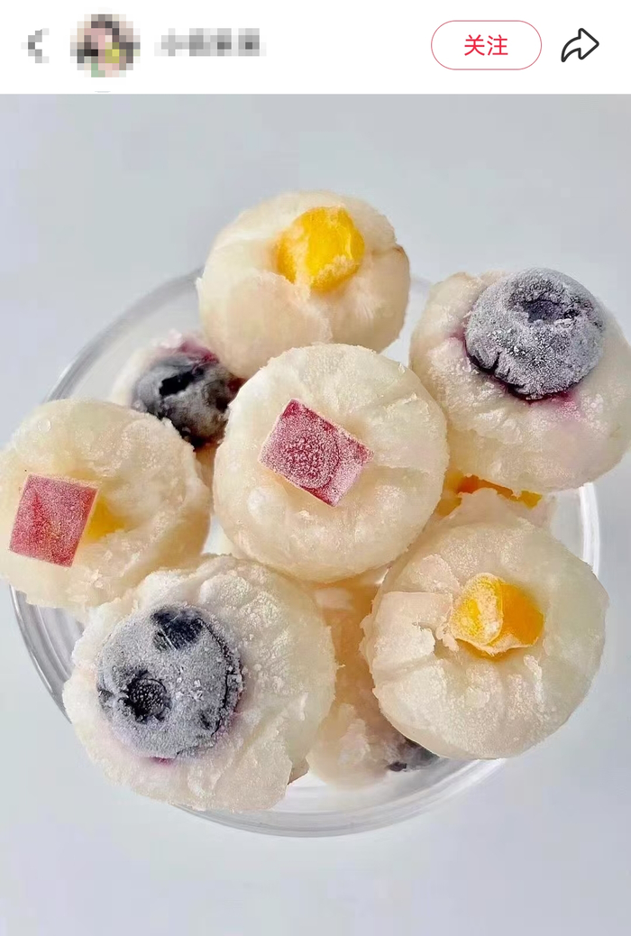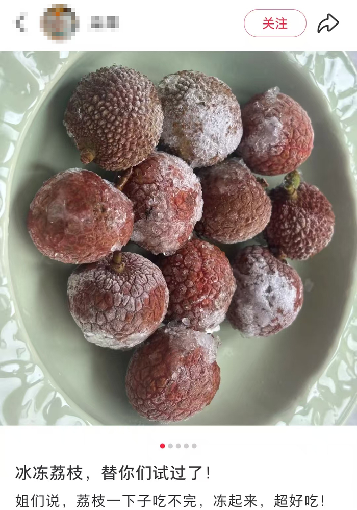 还有网友将荔枝拨皮去核,加上酸奶和各种水果,冷冻后就变成了荔枝冰淇淋球。
