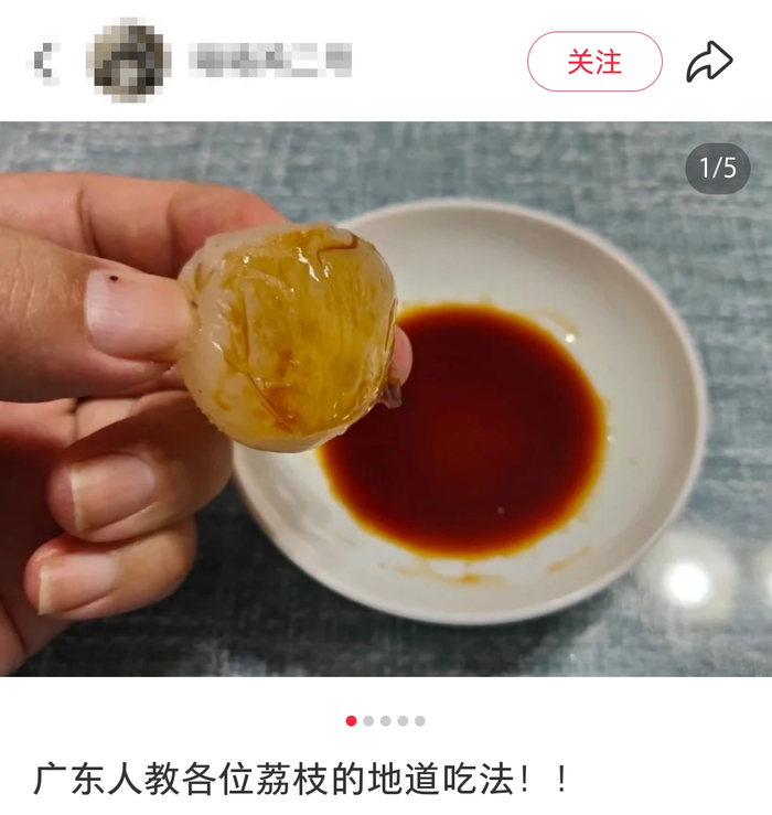 鲜荔枝蘸酱油,可谓是很多老广们的最爱。