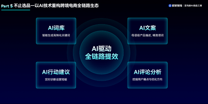 卖家穿海始于选品,但并不局限于选品。跨境电商链条上的各个环节,卖家穿海都已经或者正在结合AI给出解决方案。 在运营层面,我们有以下重点功能: