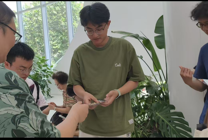 在上影节,影迷们自制各色各样的精美物料,有精美的票夹、绚丽的镭射光栅卡、精心设计的透卡,而蔚然“自嘲”自己走的是“朴实无华”风格。学习财会专业的蔚然并不懂设计,从“入坑”自制物料这个爱好,开始只能用“醒图”“美图秀秀”这样的简单软件“手错”,“虽然粗糙,但其实自己也花了不少心思,相信同样喜欢电影的人能够看到其中的一些小心思。”此外,“毕竟现在还是学生,以前找过非常精美的印刷店,省下看电影的票钱,也只能印几十张,常常一发就秒没。”这一次,他经由其他影迷介绍,找到了更具性价比的渠道,“主打一个‘量大管饱’,希望每一个留下票根纪念的影迷都能有所收获。”