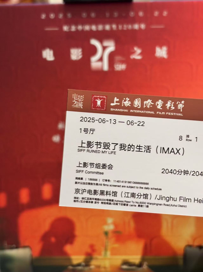 虽然制作了吐槽“上影节毁了我的生活”的物料,杨雨洁实则也感受到这个电影节正变得越来越贴心。“可以看到有很多机会能抽到热门电影票,这是往年没有的。还有影迷节、各个影院推出的打卡盖章等活动,都是加强了影迷的参与感,给影迷创造了更多的互动机会,可以让大家留念。”