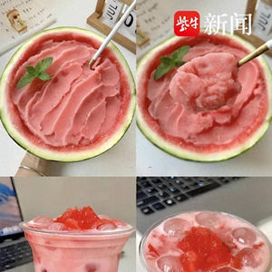 据介绍,这里采收的西瓜,除了以最新鲜状态“现摘现发”,更大一部分则被送入农场的加工区。“咔嚓掰西瓜痛快,但年轻人想更方便点、更有品味些、更‘小资’些。”注意研究市场需求的夏师傅动起了脑筋,于是农场陆续推出西瓜冰沙、西瓜青提牛奶、西瓜啵啵球等多款创意饮品。线上线下同时开卖,供不应求。负责制作的农户李大姐笑着说:“以前瓜熟了愁卖,现在做冰沙、做饮料,瓜耗得快,我们也忙得开心。”