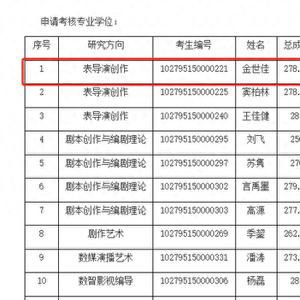 6月20日,上海戏剧学院发布了2025年上海戏剧学院博士研究生拟录取名单。拟录取名单显示,申请考核专业学位中,金世佳录取表导演创作研究方向。
