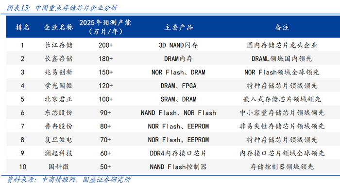 兆易创新、普冉股份、聚辰股份、东芯股份、恒烁股份、江波龙、佰维存储、朗科科技、德明利等。