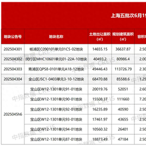 6月19日,上海今年五批次集中供地开拍。本批次共出让6宗地块,起始总价达到192.47亿元,是今年上海土拍起始总价最高的一次。6宗地块分两天出让,6月19日和20日分别出让5宗和1宗。