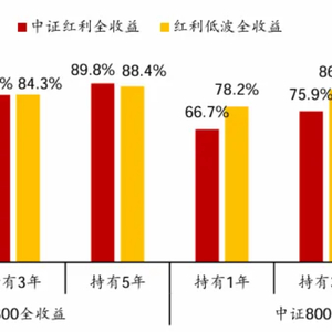 在强对标基准的业绩考核机制下,红利资产或迎来配置良机。当持有时期较长时,红利资产相对于沪深300等宽基指数有着较高的胜率,与方案的中长期业绩考核导向非常契合。根据测算,如果持有周期超过1年,中证红利和红利低波指数较沪深300和中证800的胜率基本都高于70%(上述指数均为全收益口径);当持有周期达到3年或5年时,胜率更是接近90%。