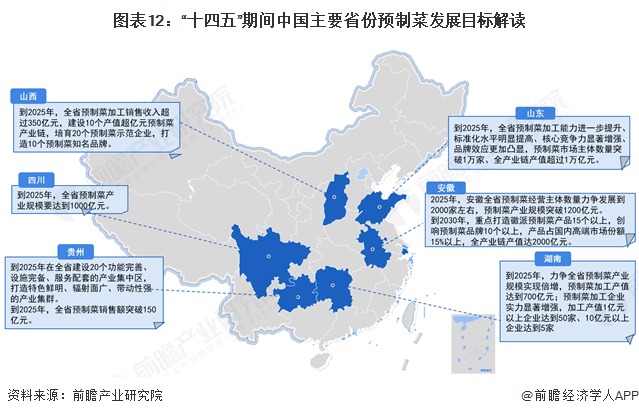 根据各省出台的有关预制菜行业发展政策,前瞻大致梳理了主要省份预制菜行业的建设目标或规划: