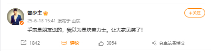 6月13日下午,曾毅在社交平台回应此事:手表是朋友送的,我以为是块劳力士。让大家见笑了!