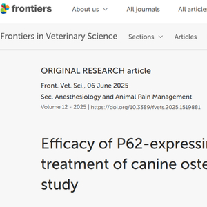 CureLab Veterinary表示,该研究还存在一定的局限性,包括受试动物数量、缺乏长期随访、以及结果仅限于CBPI测量表。在未来研究中,还应该明确P62质粒的抗OA作用机制。