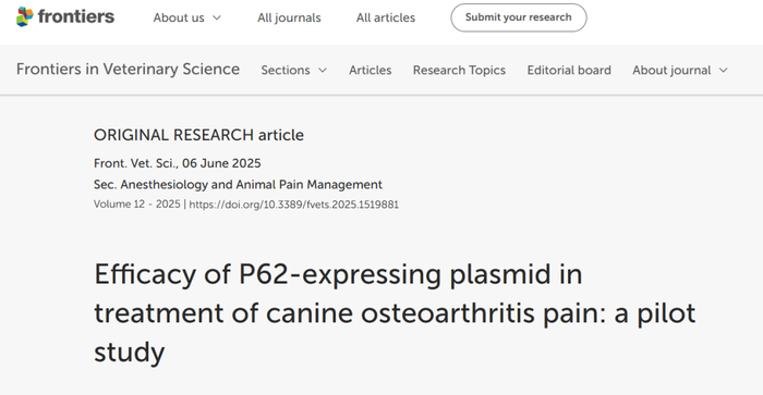 狗狗骨关节炎治疗成功率达90%,编码p62的质粒DNA