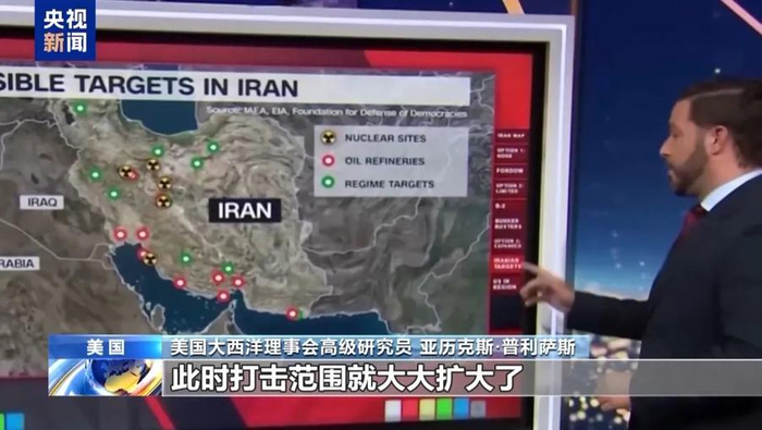 普利萨斯认为,这是最不可能首先采用的选项。“但如果我们真的决定发动袭击,除了福尔多,还有哪些目标,可以看到这里有核设施的标记。还有政府目标、炼油厂,此时打击范围就大大扩大了。更有可能的是这种情况可能只会在伊朗决定攻击在该地区的美军时发生。”