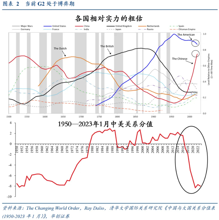 (上图蓝色线为美国综合实力估计)