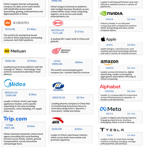 最近高盛发了《中国私营上市企业(POE)的回归》的研究报告。其中关注度比较高的就是高盛给出了对标“美股七巨头“的”中国民企十巨头“名单。这十家公司分别为:腾讯、阿里、小米、比亚迪、美团、网易、美的、恒瑞医药、携程和安踏体育。
