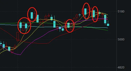 如下图所示,全A指数自5月份以来,多次在大阴线次日录得大阳线;差一点的情况(如5月22日、23日),也是次日盘中有试图修复的长上影线。