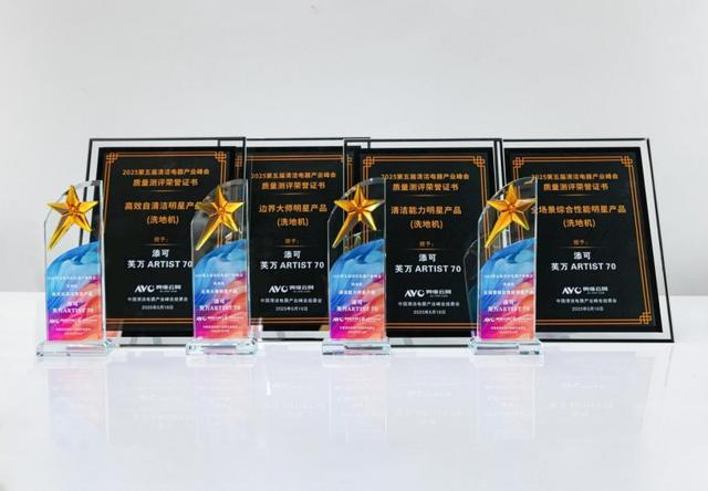 不仅在核心技术上追求极致,添可更致力于推动家居清洁美学革命。其深度融合家居美学理念的芙万Art Station和芙万Artist系列,凭借其前沿设计理念与卓越性能,重新定义了智能家电与家居空间和人的关系。这一创举,成功将洗地机从纯粹的清洁工具,升格为能够点缀现代家居空间的“家居艺术品”,引领了清洁电器美学新时代的到来。芙万Artist 70更是在2025第五届中国清洁电器产业峰会上荣获主办方奥维云网(AVC)颁发的全场景综合性能明星产品等4项大奖。