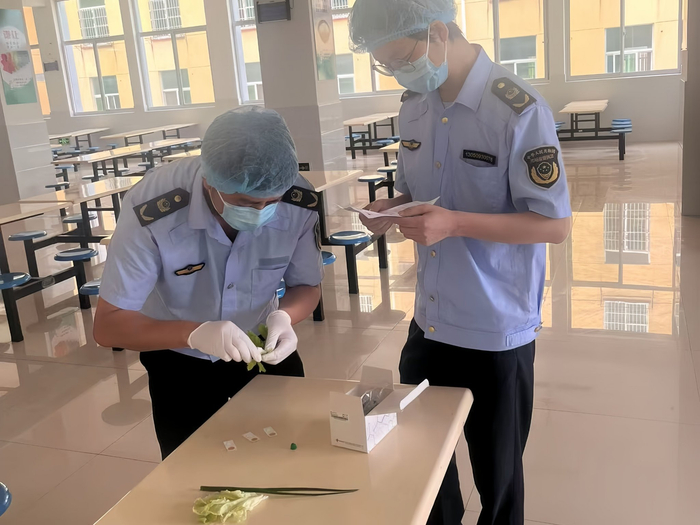 在两所考点学校食堂检查过程中,执法人员严格查看食品加工制作流程,要求食堂工作人员务必做到生熟食材分开存放与加工,坚决杜绝交叉污染;确保留样量达标、留样时间符合规定,留样记录详实完整;要求操作人员严格保持操作间干净整洁,各类清洗、消毒设备正常运行;食品分类存放,保持离地离墙,防止食品过期变质,并严格查验食材采购凭证,保证食材来源正规、可追溯。