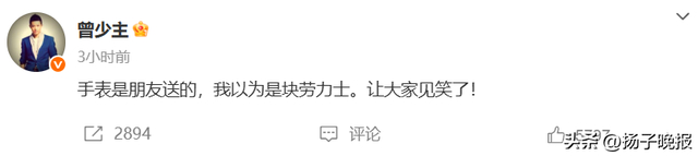 6月13日,曾毅发文回应手表争议:“手表是朋友送的,我以为是块劳力士。让大家见笑了!”