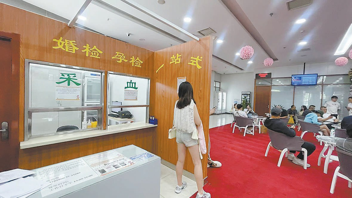 现场工作人员告诉记者,免费婚检主要是针对几类传染病的检测,基因类遗传病和精神类疾病则需要自己陈述病史。另外,在妇幼保健院婚检也有付费检查项目可选。工作人员表示,婚检结果可在医院官方公众号上查看电子报告,发现重大疾病会告知本人,但医院不会通知伴侣。